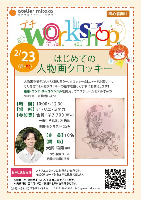 【イベント】プチワークショップ inミタカ「はじめての人物クロッキー」 参加者募集中!!